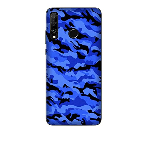 Cover Custodia compatibile con Huawei P30 Lite Militare Mimetica Camouflage Military Army Nero Blu e Nero Mimetico/Gel di silicone morbido TPU/Telefono Hard Snap on Antiscivolo Antigraffio Antiurt