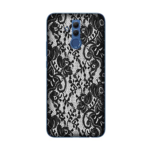 Cover Custodia Compatibile con Huawei Mate 20 Lite Sfondo Ricamato Pizzo Bianco e Nero con Rose/Gel di Silicone Morbido TPU/Telefono Hard Snap on Antiscivolo AntiGraffio Antiurto Protettivo TPU