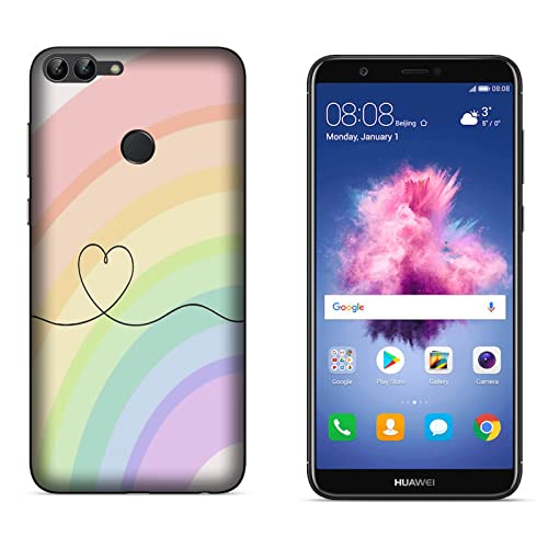 Cover Custodia Compatibile con Huawei P Smart 2018 Arcobaleno Linea Cuore/Gel di Silicone Morbido TPU/Telefono Hard Snap on Antiscivolo AntiGraffio Antiurto Protettivo TPU