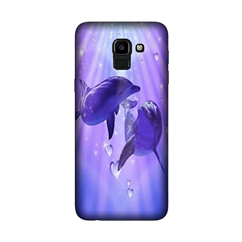 Cover Custodia compatibile con Samsung Galaxy J6 2018 Animali delfini cuore innamorati/Stampa anche sui lati/Telefono Rigido Snap on Antiscivolo Antigraffio Antiurto Protettivo Rigido