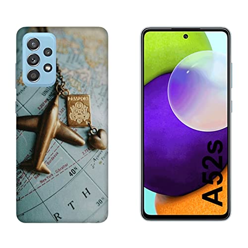 Cover Custodia compatibile con Samsung Galaxy A52s Travel Wanderlust aereo passaporto mappamondo/Stampa anche sui lati/Telefono Rigido Snap on Antiscivolo Antigraffio Antiurto Protettivo Rigido