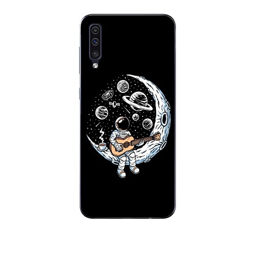 Cover Custodia compatibile con Samsung Galaxy A50 Astronauta Spazio con Chitarra sulla Luna/Stampa anche sui lati/Telefono Rigido Snap on Antiscivolo Antigraffio Antiurto Protettivo Rigido