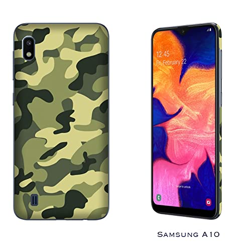 Cover Custodia compatibile con Samsung Galaxy A10 Militare Mimetica Camouflage Military Army Verde chiaro militare/Stampa anche sui lati/Telefono Rigido Snap on Antiscivolo Antigraffio Antiurto Pr