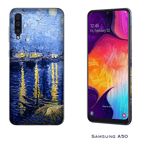 Cover Custodia compatibile con Samsung Galaxy A50 Vincent Van Gogh NOTTE STELLATA SUL RODANO/Stampa anche sui lati/Telefono Rigido Snap on Antiscivolo Antigraffio Antiurto Protettivo Rigido