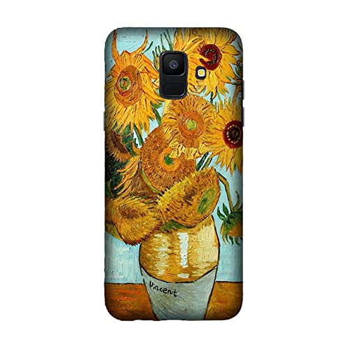 Cover Custodia Compatibile con Samsung Galaxy A6 Vincent Van Gogh Vaso di Girasoli/Stampa Anche sui Lati/Telefono Rigido Snap on Antiscivolo AntiGraffio Antiurto Protettivo Rigido