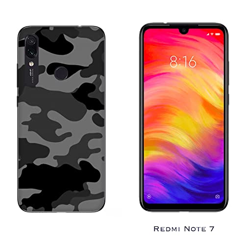 Cover Custodia Compatibile con Xiaomi Redmi Note 7 Militare Mimetica Camouflage Military Army Nero Grigio Nero/Stampa Anche sui Lati/Telefono Rigido Snap on Antiscivolo AntiGraffio Antiurto Protet