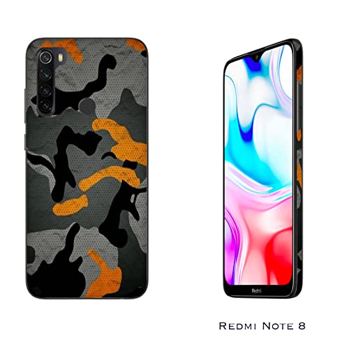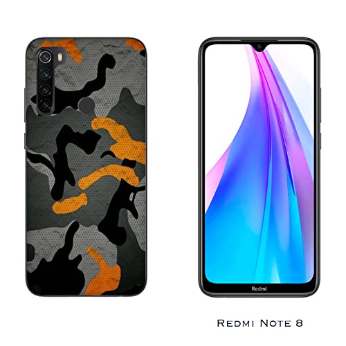 Cover Custodia Compatibile con Xiaomi Redmi Note 8 Militare Mimetica Camouflage Military Army Nero Grigio Arancione/Stampa Anche sui Lati/Telefono Rigido Snap on Antiscivolo AntiGraffio Antiurto P