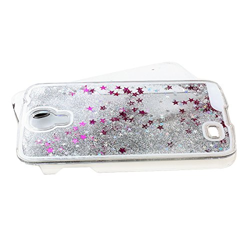 Cover Custodia per Samsung Galaxy S4, ISAKEN 3D Creative Design Fluente copertura Liquido Heart of Love Floating scintillio di Bling Quciksand Galaxy S4 trasparente dura posteriore plastica Custodia protettiva - stelle: argento