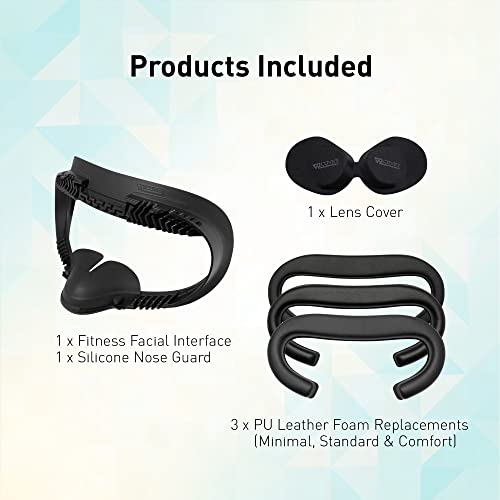 ✅ 6 VR accessories for Oculus / Meta Quest 2: Facial Interface, Minimal, Standard and Comfort Foam Replacements, Nose Guard and Lens Cover