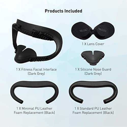VR Cover Fitness Facial Interface and Foam Set for Oculus/Meta Quest 2 (Dark Grey & Black)