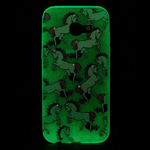 Cover Galaxy A5 2017, ISAKEN Custodia per Samsung Galaxy A5 2017 - Fashion Agganciabile Luminosa Cover Glitter Bling Diamante Strass Brillante Caso con LED Lampeggiante Sottile TPU Cover Rigida Gel Silicone Protettivo Skin Custodia Colorate Pattern Style Shell - Cavalli bianchi