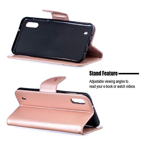 Cover Galaxy A10 Custodia,Goffratura Rilievo farfalla Flip Custodia Funzione Stand PU Premium Protezione Super Sottile TPU Interno Case Porta Carte Cover Custodia per Samsung Galaxy A10,Oro rosa
