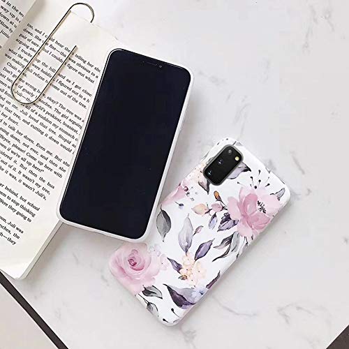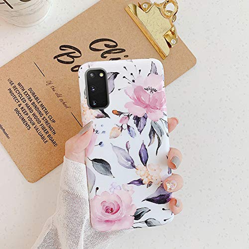Cover Galaxy S20,Custodia Galaxy S20 Modello dipinto fiori foglie banana Ultra Sottile Morbido Trasparente Silicone Custodie Protettivo Crystal TPU Gel Cover Custodia Chic Clear Case Cover,Fiore rosa