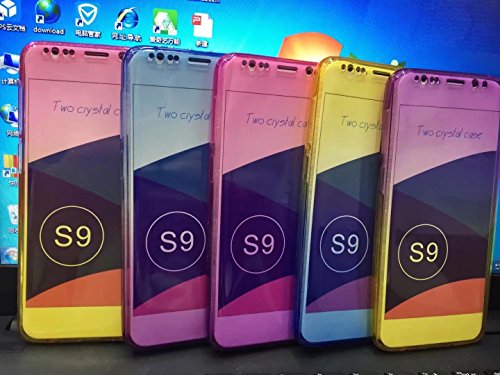 Cover per Galaxy S9,Custodia per Samsung Galaxy S9 in Silicone,Leeook Freddol Creativo 360 Gradi Full Body 2 in 1 Ultra Sottile Morbido Gradient Viola Gialla Modello Crystal Clear Transparent Flessibile Resistente Ai Graffi Davanti e Dietro Soft Gel Tpu Full Cover Protettiva Skin Bumper per Samsung Galaxy S9 + 1 x Nero Stilo-Gradient Viola Gialla