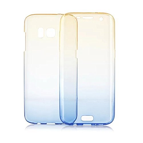 Cover per Galaxy S6,Custodia per Samsung Galaxy S6 in Silicone,Leeook Freddol Creativo 360 Gradi Full Body 2 in 1 Ultra Sottile Morbido Gradient Gialla Blu Modello Crystal Clear Transparent Flessibile Resistente Ai Graffi Davanti e Dietro Soft Gel Tpu Full Cover Protettiva Skin Bumper per Samsung Galaxy S6 + 1 x Nero Stilo-Gradient Gialla Blu