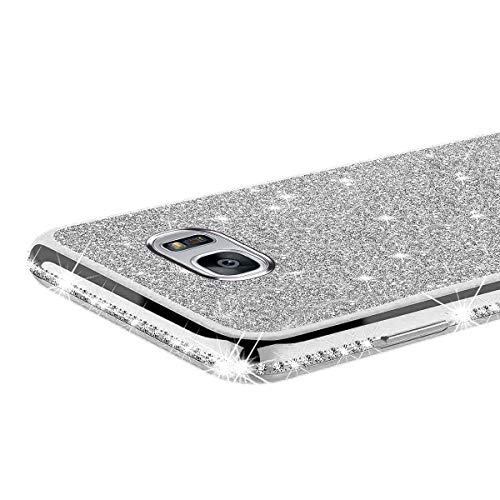 Cover Galaxy S7 Edge,Custodia Galaxy S7 Edge,Ultra Sottile Bling Scintillio Lucido Glitter Diamanti Strass Placcante Morbido Silicone TPU Gel Custodia Case Cover per Galaxy S7 Edge,Argento