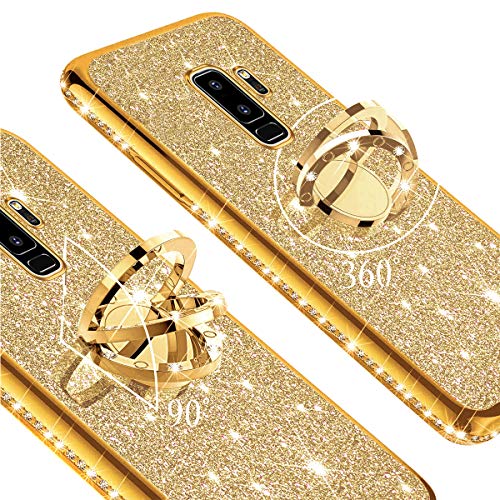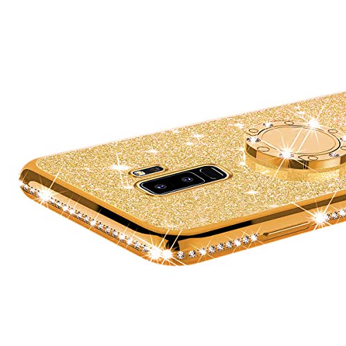 Cover Galaxy S9 Plus,Custodia Galaxy S9 Plus,[Anello supporto] Bling Scintillio Lucido Glitter Diamanti Strass Paraurti Placcante Morbido Silicone TPU Gel Custodia Case Cover per Galaxy S9 Plus,Oro