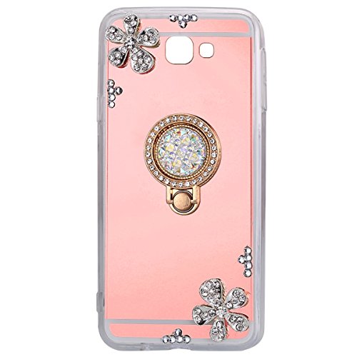 Cover Galaxy J5 Prime Custodia in TPU,Uposao Lusso Bling Glitter Strass Diamante Custodia in Silicone Morbido per Samsung Galaxy J5 Prime Specchio Custodia con Oro Tondo Anello Supporto-(Oro rosa)