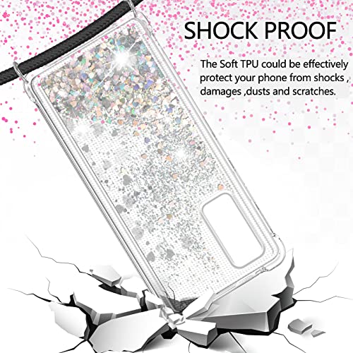 Cover Glitter per Xiaomi Redmi Note 11 4G/Note 11S 4G 6.43'' con Cordino, Custodia Brillantini Liquido con Collana Ultra Sottile Silicone Trasparente Protettivo Case per Cellulare Cordoncino -Nero