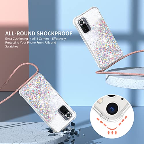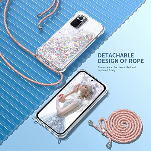 Cover Glitter per Xiaomi Redmi Note 10 Pro/Note 10 Pro Max con Cordino, Custodia Brillantini Liquido con Collana Ultra Sottile Silicone Trasparente Antiurto Protettivo Case per Cordoncino-Oro Rosa