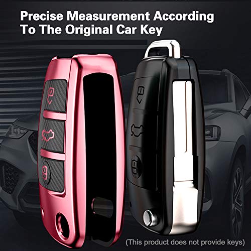 Cover Guscio Silicone per Chiave Audi - Custodia in TPU, Custodia Portachiavi in TPU Design in Fibra di Carbonio Adatto per Audi: A1 / A3 / A4 / Q3 / Q7 / Q5 / S3 / S5 / S6 / R8 / TT... (Pink)