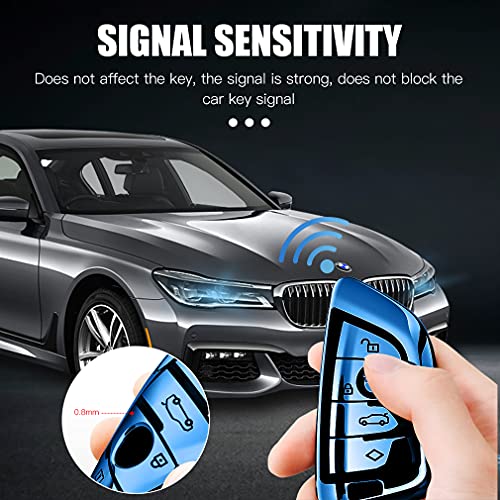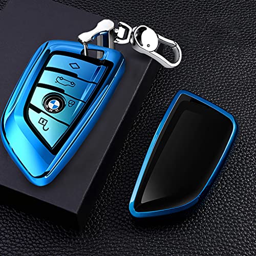 Cover Guscio Silicone per Chiave B-M-W - Custodia in TPU Morbida Cromata per Telecomando Keyless B-M-W Serie 1 3 5 7 X1 X3 X4 X5 X6 F30 E30 Protezione con Portachiavi Con portachiavi (Blu)