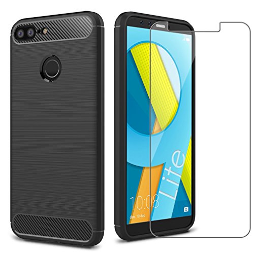 Cover Honor 9 Lite Silicone Nero Classico + HD Pellicola Protettiva in Vetro Temperato, EasyBee Morbido TPU Case Shock-Absorption Anti-Graffio Elegante Custodia per Huawei Honor 9 Lite