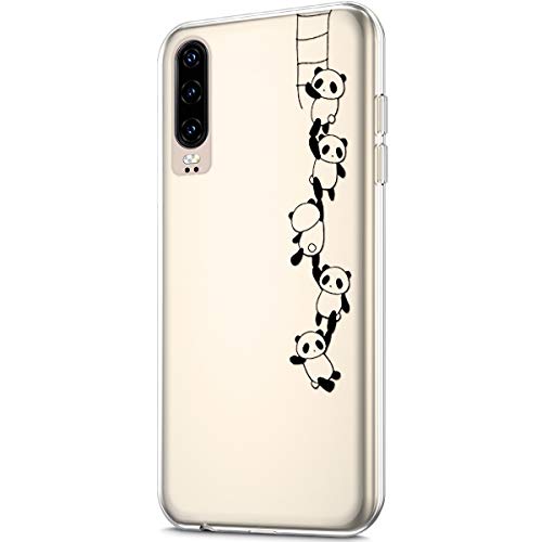 Cover Huawei P30 Custodia,Disegno del modello dipinto arte Ultra Sottile Morbido Trasparente Silicone Custodie Protettivo Crystal TPU Gel Cover Custodia Chic Clear Case Cover,Stringa di panda