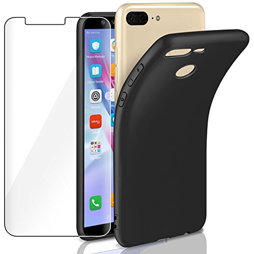 Cover Huawei Honor 9 Lite + Pellicola Protettiva in Vetro Temperato, Leathlux Custodia Huawei Honor 9 Lite Nero Silicone Case Molle di TPU Morbido Shock-Absorption Anti-Scratch Case per Huawei Honor 9 Lite