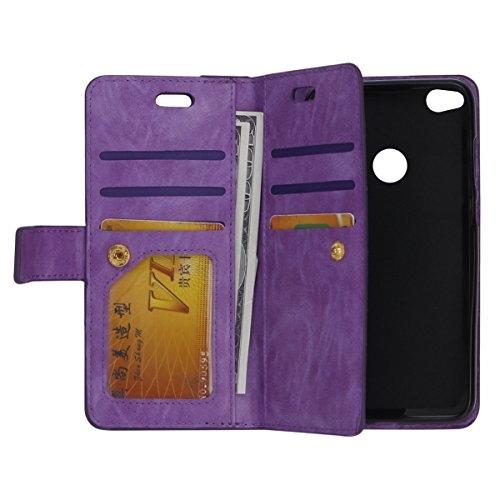 Cover Huawei P8 lite 2017 Custodia Pelle,Uposao Retro Cover Premium PU Leather con Cerniera Protettiva Flip Case in Pelle Portafoglio Libro Custodia per Huawei P8 lite 2017-(porpora)