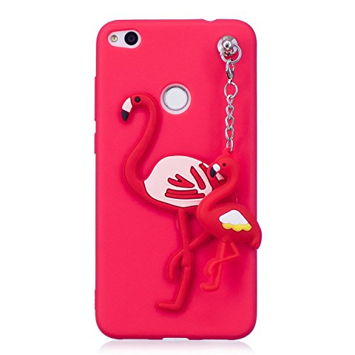 Cover Huawei P8 Lite 2017, Nuovo 3D Carino Cartone Animale [Pendente Fenicotteri] Morbido Silicone TPU Ultra Sottile Protettiva Antiurto Telefono Caso - Rosso
