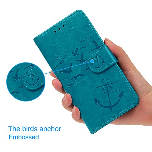 Cover Huawei P8 Lite 2017 Pelle Premium PU e Silicone TPU Case [2 in 1, Separato] - Flip Custodia Morbido Leather, Modello di Uccello e Ancore, Chiusura Magnetica, Supporto Stand, Portafoglio Porta Carte e Protettiva per Huawei P8 Lite 2017 - Colore di Blu