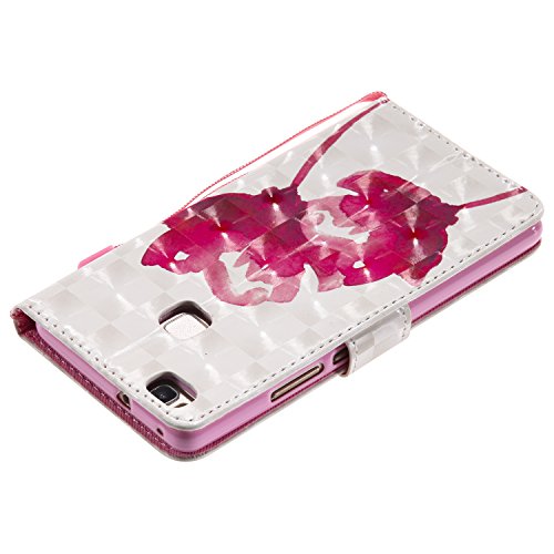 Cover Huawei P9 Lite Custodia,ikasus Modello farfalla verniciato colorato 3D Flip Cover Portafoglio PU Pelle Protective Wallet Magnetica Stand Custodia Cover per Huawei P9 Lite,Loto rosa