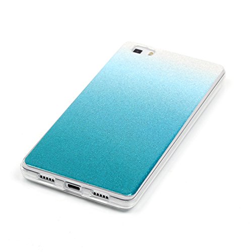 Cover per Huawei P8 Lite Custodia Silicone, TOCASO Copertura di Ccuoio Cover in TPU Guscio Cambiamento Graduale Luccichio Glitter per Huawei P8 Lite Protezione Caso Ultra Sottile Shock-Absorption shell protettivi Bumper Covers di Gomma Alto Morbido Clear Gel Sottile Conchiglia Copertina Magro Flessibile Protettiva Cases di telefono Rubber Case + 1x Nero Stylus Azzurro