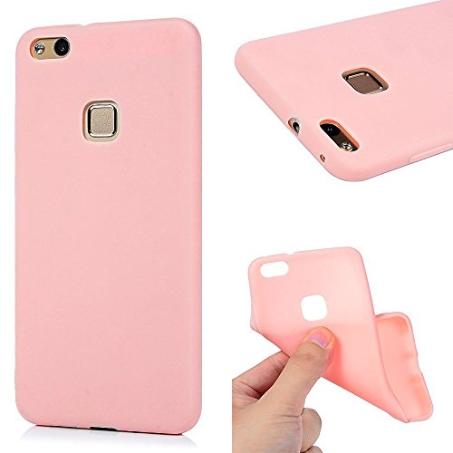 3x Cover per Huawei P10 Lite, OUJD Huawei P10 Lite Cover Silicone Morbido TPU Flessibile Gomma Opaco, Custodia Antiscivolo Satinato, Ultra Sottile Cassa Protettiva,Tappi Antipolvere Per Huawei P10 Lite - Verde Menta,Rosa Chiaro,Rosso