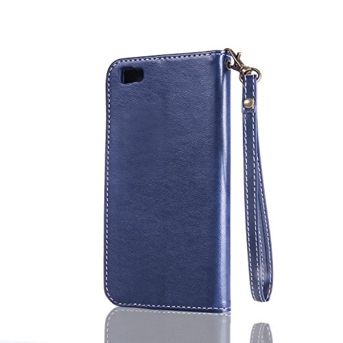 Cover Huawei P8 Lite in Pelle,Huawei P8 Lite Custodia Portafoglio,Felfy Elegante Farfalla Rose Fiori Painting Tinta Unita PU Leather Wallet Portafoglio Pelle Libro Stand Flip Custodia Cover per Huawei P8 Lite,Custodia e Porta Carte di Credito e Biglietti da Visita con Invisibile Chiusura Magnetica TPU Silicone Morbido Paraurti Copertura Bumper Cover per Huawei P8 Lite di Blu scuro+1x Stilo penna