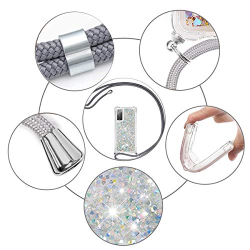 Cover per Huawei P Smart 2021, Custodie Tracolla Cordini Custodia de Cellulare Girocollo Case, Glitter Bling Liquido Sabbie Mobili Crossbody TPU Bumper con Collana e Cordoncino