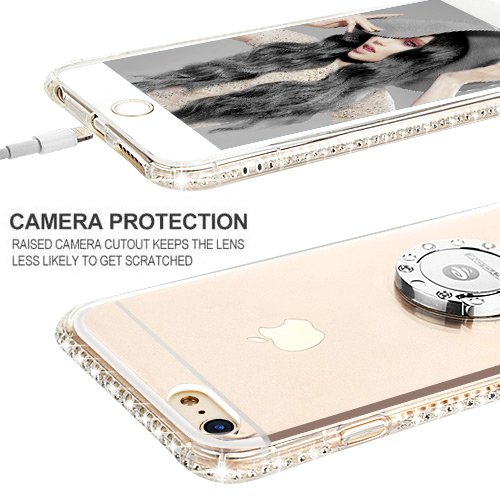 Cover iPhone 6/6S Glitter Brillantini Silicone per Ragazze,Kickstand Bling Diamante Brillante Cristallo Lucciante Luminosa Custodia per Dona iPhone 6/6S,4.7 pollice (Trasparente)