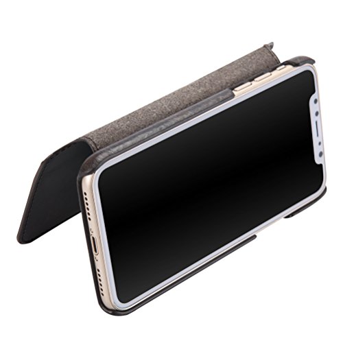 Cover iPhone X, Bestsky iPhone X Portafoglio Cuoio di Vera Pelle Retro Raccoglitore Flip Libro Antigraffio Caso Protezione case Custodia per iPhone X, Nero