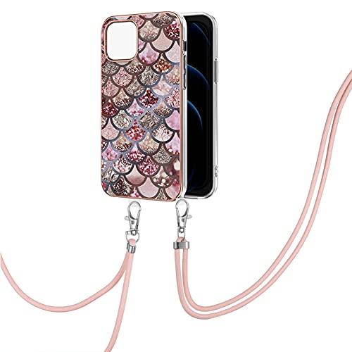 Cover per iPhone 13 Pro MAX con Cordino, Custodia Cellulare Cover con Cordoncino TPU Silicone Case Flessibile Lanyard Case Custodia Back Cover Crossbody Case per iPhone 13 Pro MAX 6.7",Scaglie rosa
