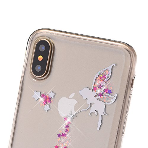 Cover iPhone X Custodia,Custodia iPhone X,Bling scintillio della scintilla Stelle della ragazza Angelo Trasparente Silicone Gel Case Cover Crystal Clear Custodia Cover per iPhone X Cover,Rosa