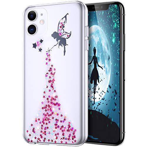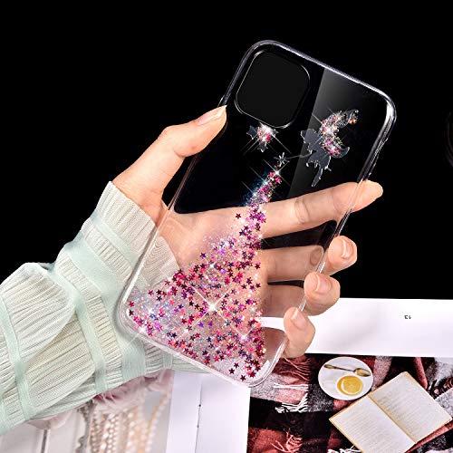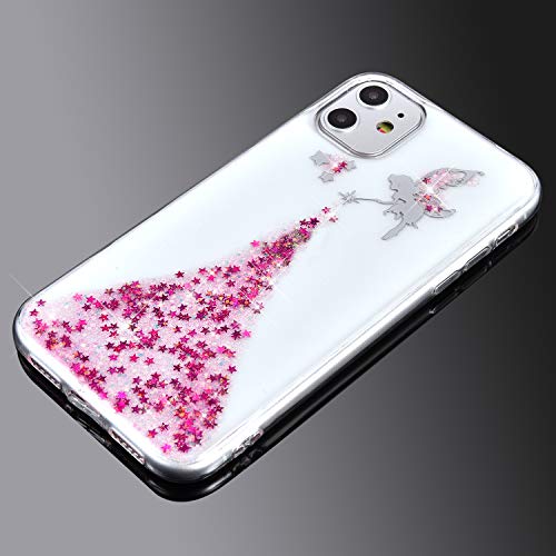 Cover iPhone 11,Custodia iPhone 11,Bling scintillio della scintilla Stelle della ragazza Angelo Trasparente Silicone Gel Case Cover Crystal Clear TPU Gel Custodia Chic Case Cover per iPhone 11,Rosa