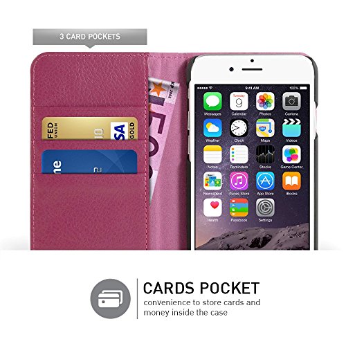 BEZ Cover iPhone 6, iPhone 6S, Custodia Compatibile per iPhone 6, iPhone 6S, Cover protettiva in pelle con porta carta di credito, Kick Stand, borsellino, chiusura magnetica - Rosa