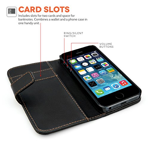 Cover iPhone 5S Custodia PU Cuoio Portafoglio Nero