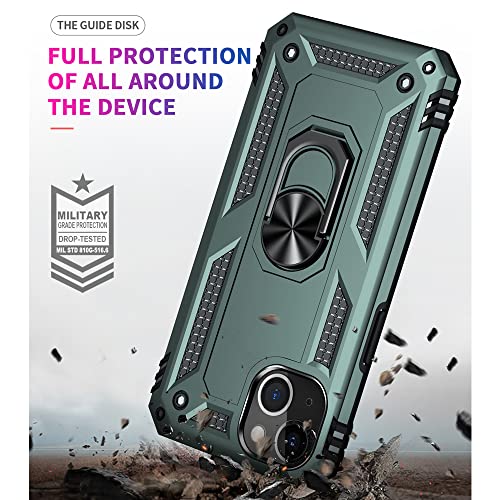 Cover iphone 13, iphone 13 Custodia con Pellicola, Grado Militare 360° Magnetica Anello Ring Supporto Case TPU Bumper Silicone Custodie per iphone 13,Verde scuro