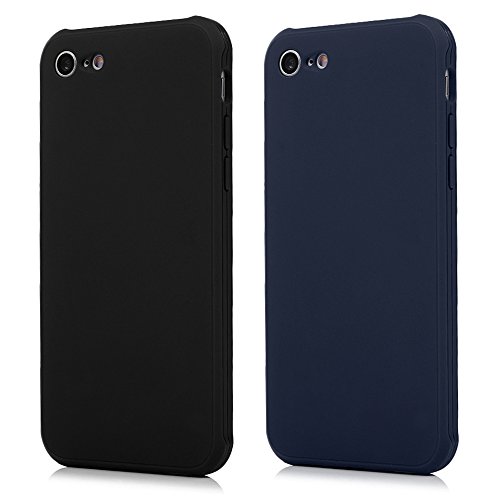 2x Cover iPhone 7, Custodia Silicone [1,3mm Fotocamera Protetteiva] Antiscivolo Antiurto Slim Bumper Case per iPhone 7, Blu Scuro + Nero