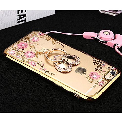 Cover iPhone 4S,Cover iPhone 4,Custodia iPhone 4S,[Supporto Anello] Placcatura Modello Fiore Lucido Cristallo Glitter Diamante Clear Morbida TPU Silicone Gel Custodia Case Cover per iPhone 4S/4,Oro