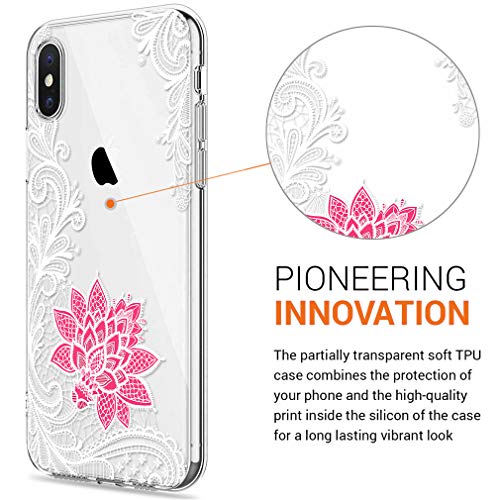 Cover iPhone XS Max, Eouine Custodia Cover Silicone Trasparente con Fiore Animali Disegni Ultra Slim TPU Morbido Antiurto 3D Cartoon Bumper Case per Apple iPhone XS Max (Mandala, Bianco-Rosa)