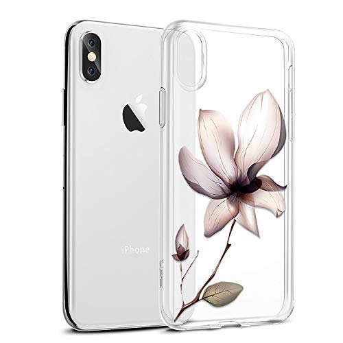 Cover iPhone XS Max, Eouine Custodia Cover Silicone Trasparente con Fiore Animali Disegni Ultra Slim TPU Morbido Antiurto 3D Cartoon Bumper Case per Apple iPhone XS Max (Loto)