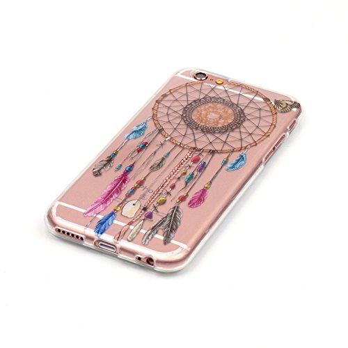 Cover Per iphone 6 6s,Funyye Morbida Sottile TPU Gel Silicone Custodia Originale Antiscivolo Elegante Protettiva Caso Chiaro Copertura Slim Thin Skin Shell + Pellicola Protettiva per iphone 6/ 6s Trasparente Soft Bumper - Piume Colorate Dreamcatcher